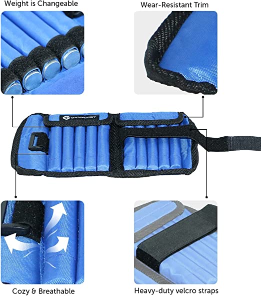 GYMENIST Pair of Ankle Weights Can Be Adjusted Up to 5.5 LB Each Set of 2 x Weight Wraps (Total 11-LB)