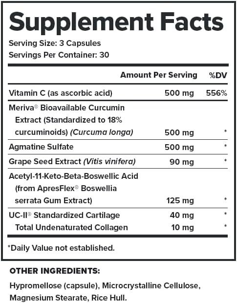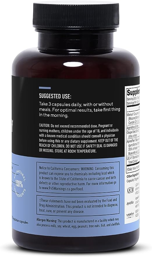 - Potentes ingredientes de origen natural nuestras cápsulas combinan el poder de varios ingredientes naturales; incluyendo boswellia, colágeno tipo II no desnaturalizado (uc ii) y extracto de semilla de uva; esta mezcla integral se dirige a múltiples aspectos de la salud de las articulaciones, brindándole un apoyo integral