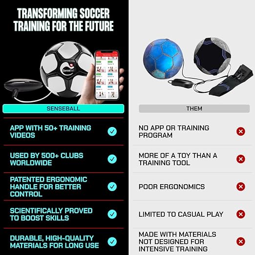 • Programa de entrenamiento de fútbol individual. SenseBall incluye en su bolsa un código de acceso a 50 vídeos de ejercicio, una aplicación móvil, un programa de hice y 2 videoconferencias en línea. Estos ejercicios son cada vez más complejos y contienen una explicación detallada de cómo realizar la tarea. Es como si tuvieras un entrenador de fútbol personal.