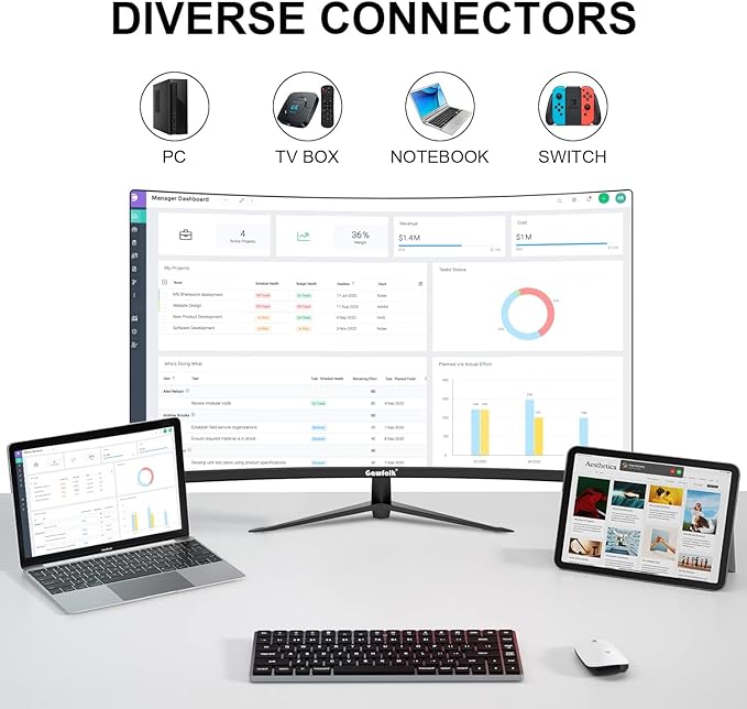 - MULTIPLE PORTS - Gawfolk monitor with 2×HDMI and 2×DisplayPort. Support video interfaces via DisplayPort (up to 165HZ) and HDMI (up to 120HZ) ports.