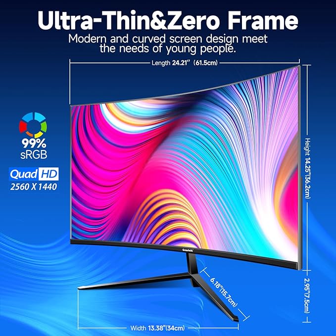- 2K QHD 165HZ MONITOR This Gaming Monitor adopts a trendy 1800R VA screen design, ultrafast 165Hz refresh rate, QHD ( 2560 x 1440 ) resolution display, 2ms(GTG) response time delivers clear pictures, smooth videos, fastest moving scenes, enhancing your usage experience in any demanding moment.