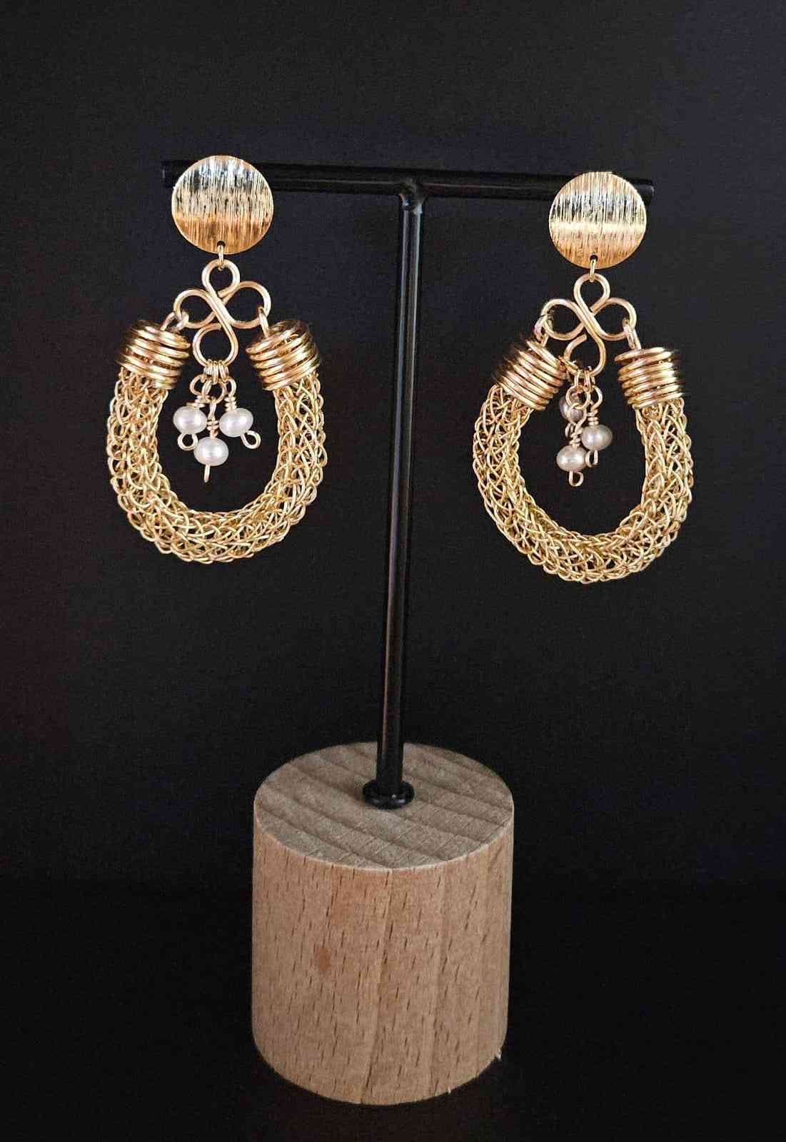 - Elaboradas con alambre de oro laminado, perlas de rio, base de oro laminado