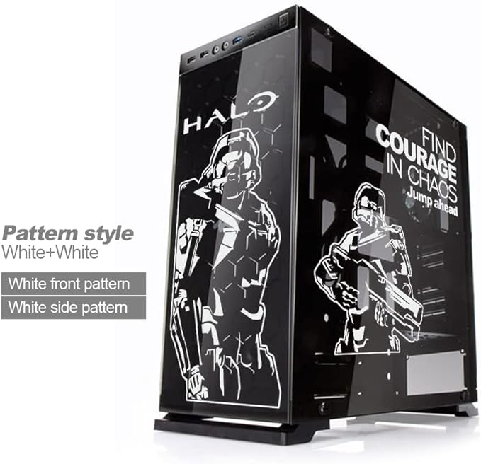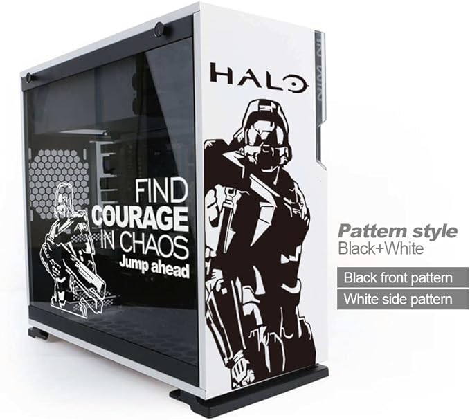 Calcomanías de vinilo para chasis de computadora, calcomanía decorativa para carcasa de PC ATX Gaming, calcomanías ahuecadas fáciles de quitar (negro y blanco)