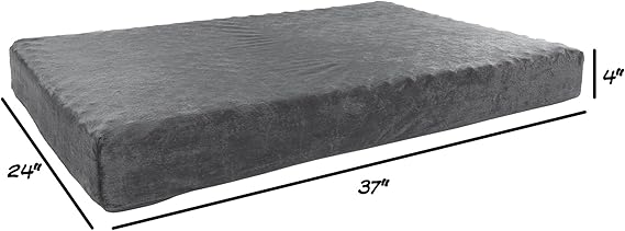 - Detalles del producto recomendado para perros o mascotas de 40 libras o menos. Dimensiones 37 pulgadas (largo) x 24 pulgadas (ancho) x 4 pulgadas (alto). Color gris. Materiales funda exterior 100% poliéster, inserto de espuma 100% poliuretano.