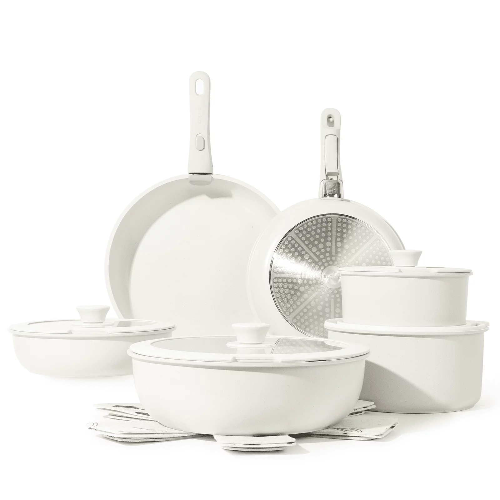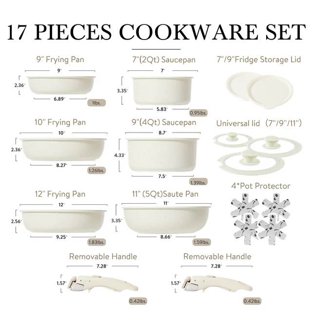 Carote Nonstick Cookware Sets, 17 Pcs Granite Non Stick Pots and Pans Set with Removable Handle