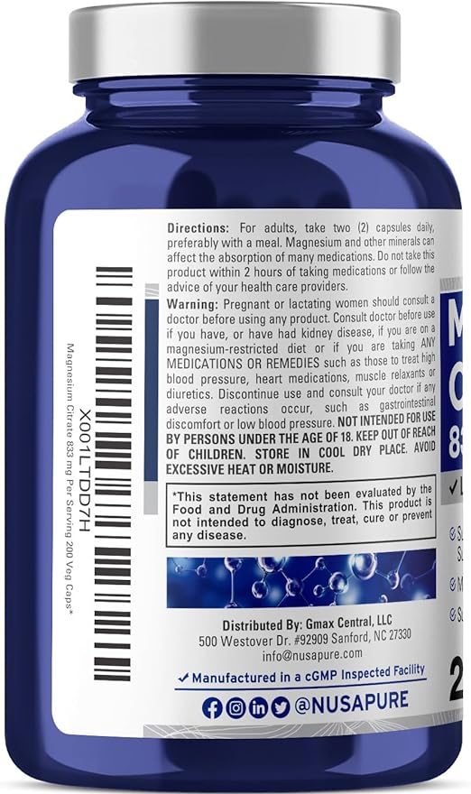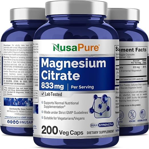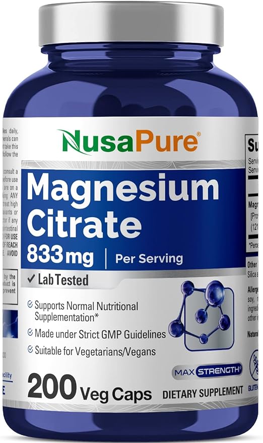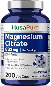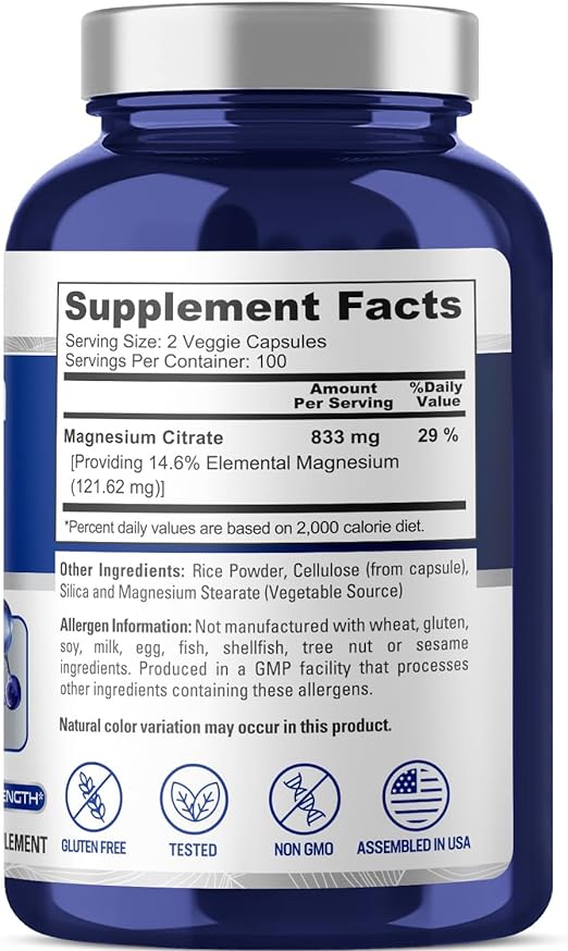 - Suplemento de citrato de magnesio de máxima resistencia 833 mg de citrato de magnesio por porción.