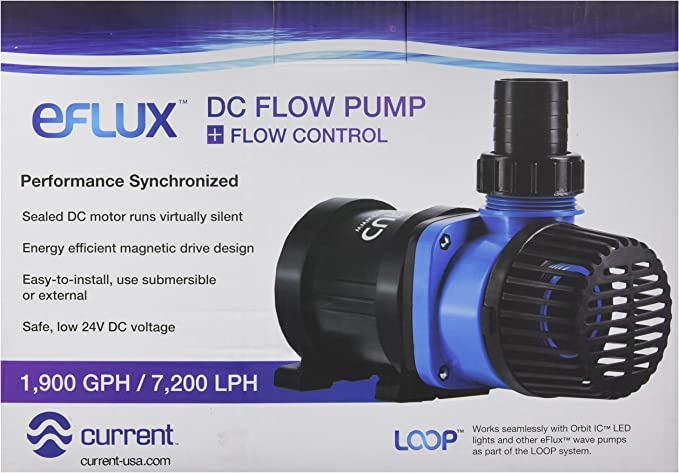 Current USA eFlux DC Flow Pump with Flow Control 1900 GPH | Ultra Quiet, Submerisble or External Installation | Safe for Saltwater & Freshwater Systems, Model Number 6010