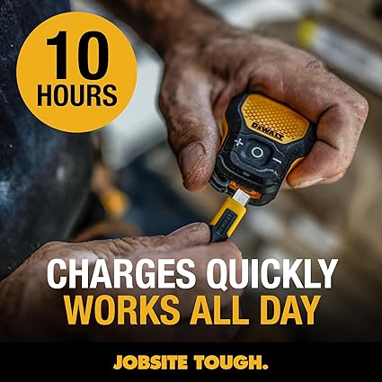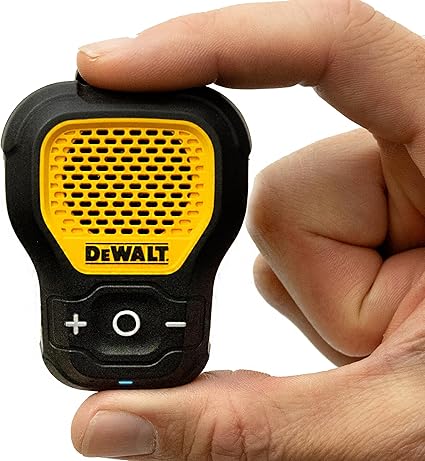DEWALT Altavoz Bluetooth portátil (versión actualizada), altavoz portátil inalámbrico con clip para sitio de trabajo profesional resistente al agua (no magnético), micrófono integrado para música y