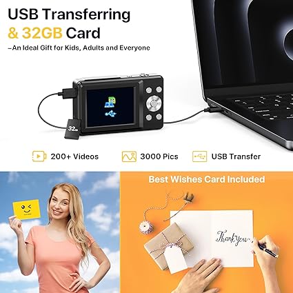 - 2024 UPGRADED DIGITAL CAMERA WITH BEST WISHES CARD This camera uses the latest & advanced CMOS chip, helping you take & record the most exciting moments in 44 MP quality images & FHD 1080P quality videos,there is also a built-in fill light to help you take high quality pictures even in low light&dark settings.This camera is an ideal thing for kids, adults, and everyone. Includes a fun wishes card that is perfect for all celebrations including birthdays, Christmas, and any occasion!