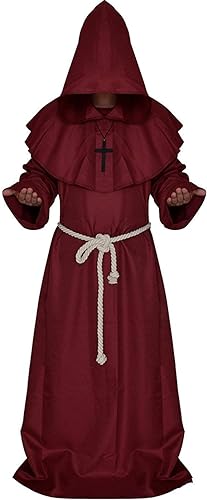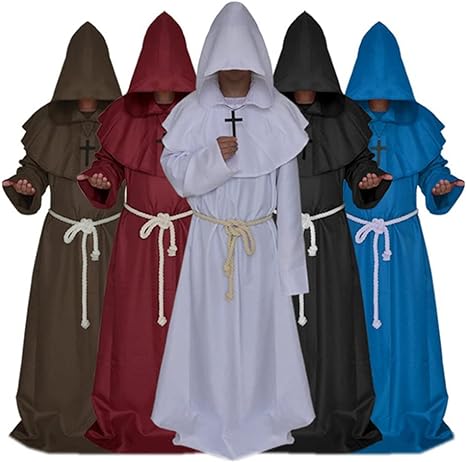 - Disfraz de monje renacentista medieval con capucha tipo Fraile, disfraz de cosplay.