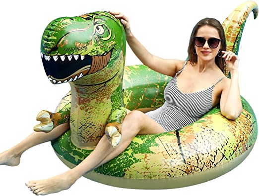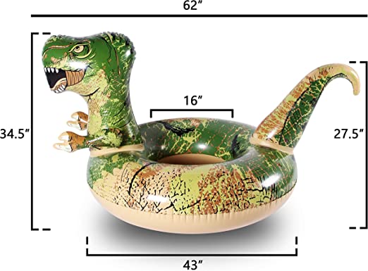 - Aspecto vívido el flotador inflable para piscina viene con un aspecto vibrante de dinosaurio. La cobertura única de dinosaurio colorido difiere de muchas competiciones. Monta sobre él, o puedes acostarte en dinosaurio. Su extravagancia se combina con la superficie imaginable.