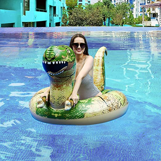 - Flotadores de piscina de dinosaurio este flotador inflable para piscina es ampliamente utilizado en la fiesta de piscina, playa, viaje a flotar en el río, viajes, lugares de entretenimiento. Disfruta del sol y el verano fresco con el dinosaurio