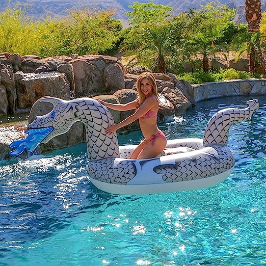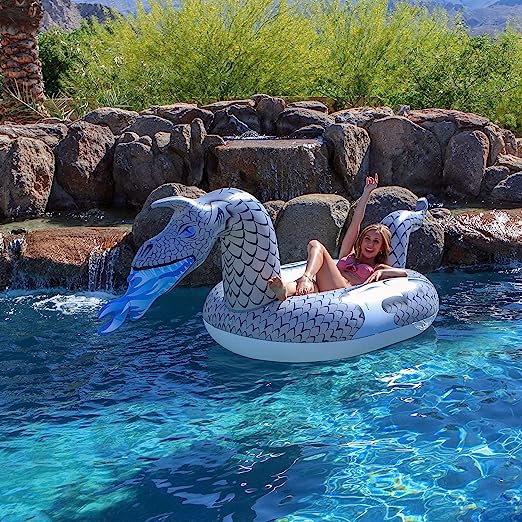 - Gran tamaño impresiona a todos en el agua con tu impresionante dragón de hielo que mide 8 pies de largo, ideal para flotar 2 adultos o un montón de niños (más de 500 libras)