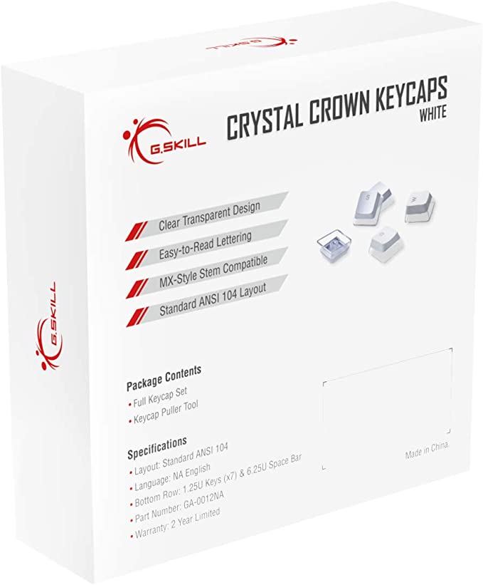 G.SKILL Crystal Crown Keycaps - Keycap Set with Transparent Layer for Mechanical Keyboards, Full 104 Key, Standard ANSI 104 English (US) Layout - White