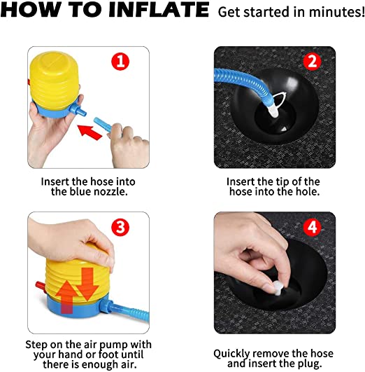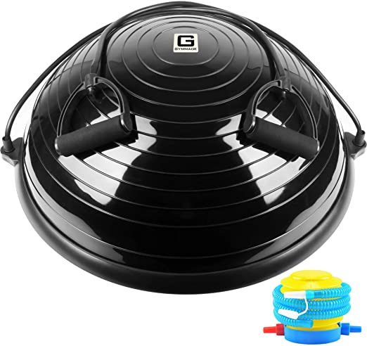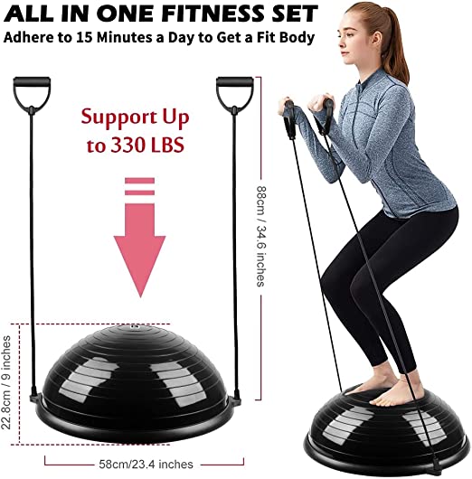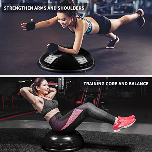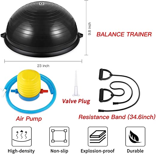 - Ligera y portátil viene con una bomba de pie de cortesía, la media bola es fácil de inflar y desinflar, lo que es conveniente para almacenar o llevar donde quieras, como gimnasio, oficina, al aire libre, etc. El diámetro de la bola de 23 pulgadas es lo suficientemente grande para un mejor usuario como estar de pie o sentado en ella.