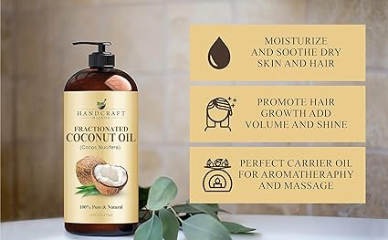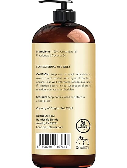 Handcraft Blends Aceite de coco fraccionado, 100% puro y natural, aceite portador de coco de grado prémium para aceites esenciales, aceite de masaje, aceite hidratante para el cabello y aceite