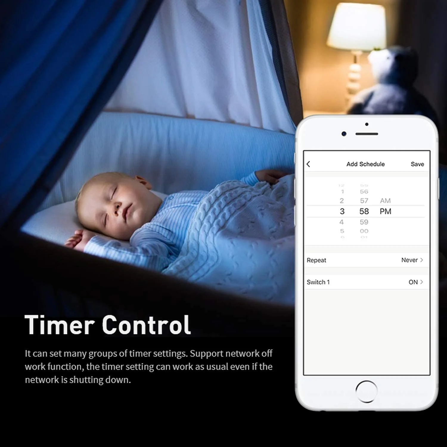 Configuración de tiempo: admite temporizador programado / cuenta regresiva para encender / apagar a la hora especificada, puede configurar el horario para apagar las luces de la habitación cuando sus hijos se sientan dormidos.