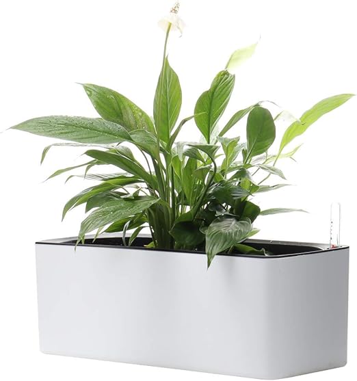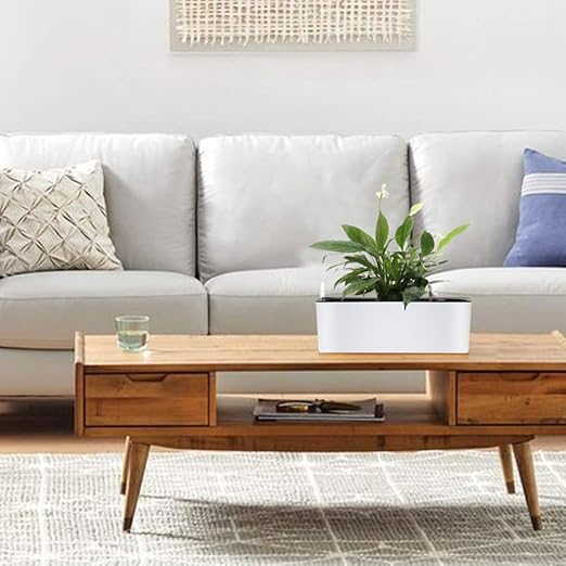 Macetero alargado con riego automático, 5.1 x 15.7 in, con suelo de coco de coco, interior y jardín, macetero decorativo moderno para todas las plantas de la casa, flores, hierbas, 1 blanco, 5.5 x 15.7 in