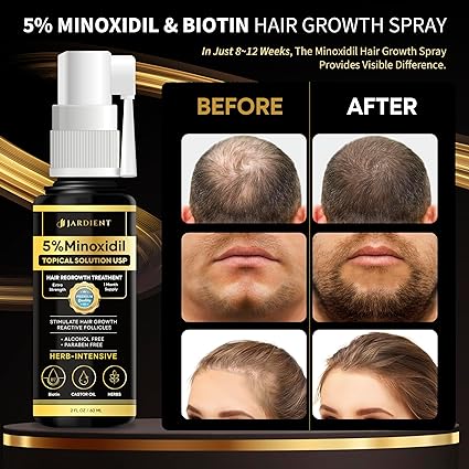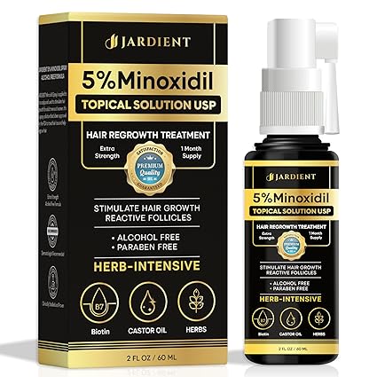 - Minoxidil para el crecimiento del cabello de las mujeres el spray Jardient Minoxidil combina 5% de mininoxidil, biotina, aceite de ricino, niacinamida, pantenol y extracto de ginseng para un rápido crecimiento del cabello, promoviendo la actividad del folículo y la producción de proteínas.