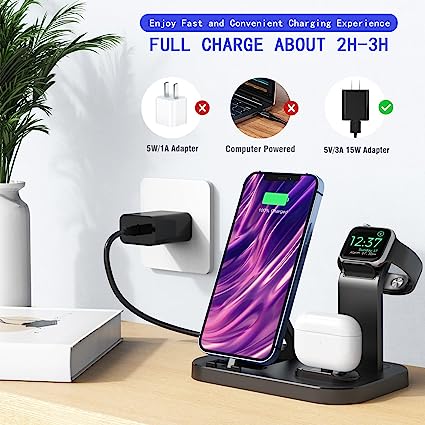 - Estación de carga 3 en 1 para dispositivos Apple esta estación de carga puede optimizar en gran medida tu mesita de noche, mesita de noche, escritorio de oficina, no más cables desordenados o buscar cargadores. La estación de carga para múltiples dispositivos Apple es muy adecuada como regalo de Navidad, regalo de Acción de Gracias o regalo de cumpleaños para amigos.