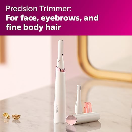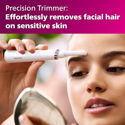 - El recortador de precisión proporciona una depilación facial suave para las mujeres, ya sea en labios, barbilla, mejillas o frente.