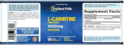 Puritan's Pride L-carnitina fumarato 1000 mg-90 cápsulas