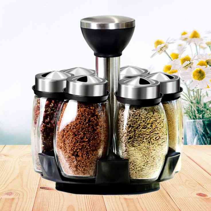 - Especiero de acero inoxidable concapacidad para 6 botes de vidrio