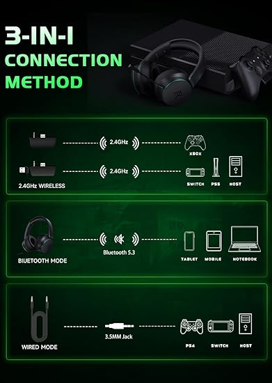 - Nota Para evitar problemas de micrófono, asegúrese de que el volumen "Headset Chat Mixer" de Xbox esté al máximo, equilibre el sonido del juego/chat y conecte firmemente el micrófono. Nota Bluetooth no es compatible con Xbox/PS5/4; use 2.4GHz inalámbrico para estos dispositivos.