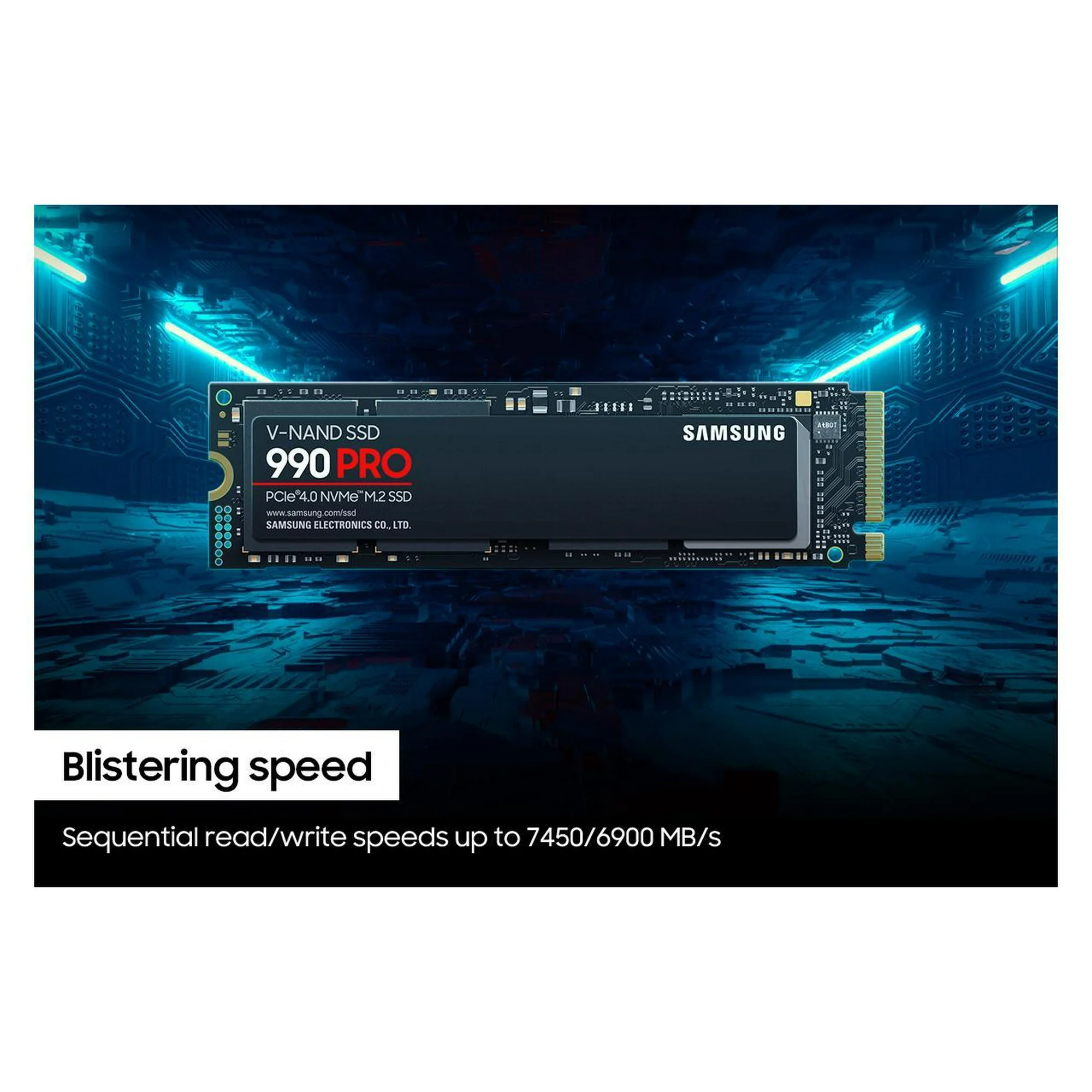 SAMSUNG 990 PRO 2TB SSD, PCIe Gen4 M.2 2280, Seq. Velocidades de Lectura de hasta 7,450 Mb/S para Computadoras de Alta Gama, Juegos y Estaciones de Trabajo de Alta Resistencia (MZ-V9P2T0B/AM) sin Tinta Térmica.