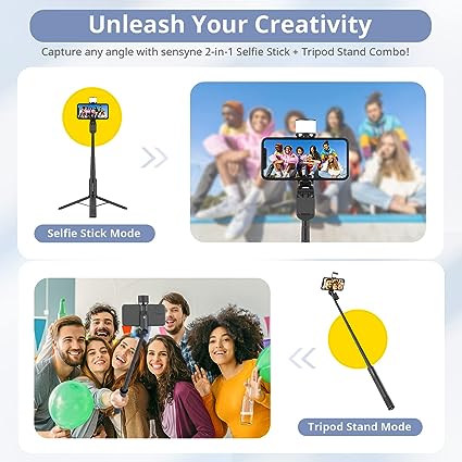 - Versátil trípode para selfies eleva tu juego de fotografía con el trípode Sensyne Versátil Selfie Stick. Fabricada con materiales de alta calidad, esta herramienta duradera es perfecta para capturar impresionantes tomas dondequiera que vayas. Con 12.4 pulgadas cuando se pliega, es portátil y adaptable con 9 opciones de altura. Un compañero ideal para YouTubers, bloggers de video, entusiastas de las selfies y cualquier persona que busque crear retratos impresionantes o transmisión en vivo en las redes sociales.