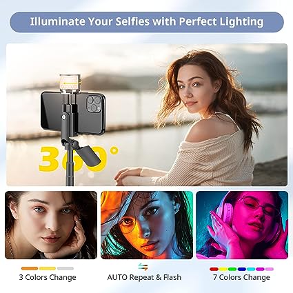 - Mango giratorio de 360° el mango giratorio de este palo selfie es una característica destacada que permite una rotación de 360°, por lo que es fácil capturar ángulos o tomas perfectos. Esta característica lo distingue de la mayoría de los otros palos selfie disponibles en el mercado. Además, su diseño compacto lo hace altamente portátil, y se puede plegar y ocultar fácilmente en el clip del teléfono cuando está completamente plegado.