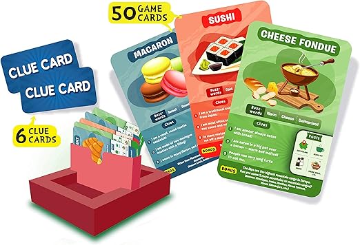 - Emocionante juego de preguntas – Pida hasta 10 preguntas para adivinar el famoso plato en la tarjeta de juego. ¿Este plato por lo general se sirve caliente? ¿Es dulce? ¿Este plato se originó en Asia? Piensa duro, haz preguntas inteligentes, utiliza tus tarjetas de pista sabiamente, y sé el primer jugador en ganar 7 tarjetas de juego