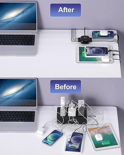 - Seguro y sonido nuestra estación de carga múltiple cuenta con protección contra cortocircuitos, sobrecorriente, sobretensión y sobrecalentamiento, lo que hace que este hub de carga USB sea lo suficientemente seguro como para ser colocado donde lo necesites; además, este bloque de cargador USB se puede colocar incluso junto a la noche o mesita de noche con un indicador no deslumbrante, pero nunca molesta tu sueño.