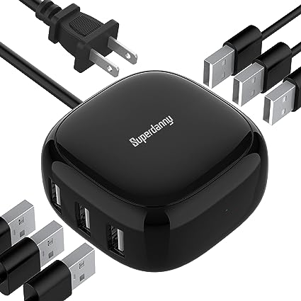 SUPERDANNY Cargador USB de 6 puertos 8A, mini estación de carga USB de 40 W, estación de carga para múltiples dispositivos, cable de 4 pies, compatible con iPhone, iPad, galaxia, píxeles, para viajes, crucero, negro