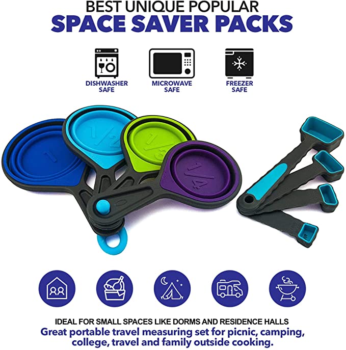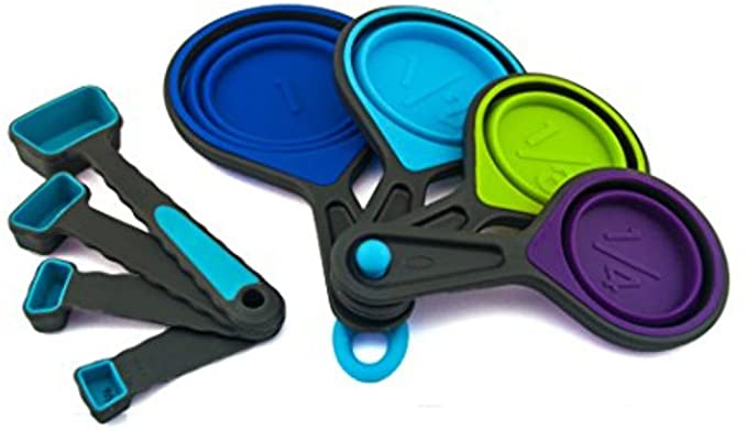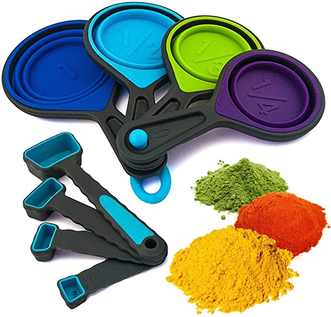 Tazas medidoras plegables y cucharas medidoras – Silicona portátil de grado alimenticio para medición líquida y seca