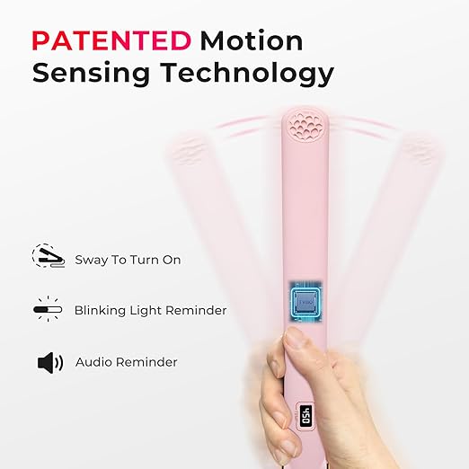- Apagado automático seguro en 5 minutos y encendido patentado con sensor de gravedad patentado, simplemente balancea la plancha de peinado para activarla. Y la función de apagado automático mejorada funcionará si la plancha mantiene 5 minutos sin movimiento, lo que te mantiene más seguro de quemaduras accidentales