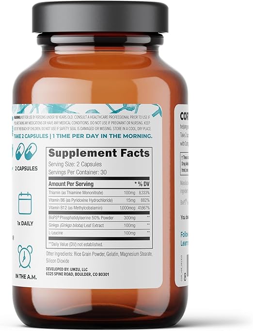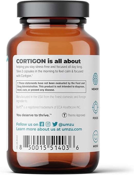 UMZU Cortigon - Suplemento de salud de cortisol - Suplemento de claridad mental y concentración - con fosfatidilserina - Vitaminas para el enfoque - Suministro para 30 días - 60 cápsulas