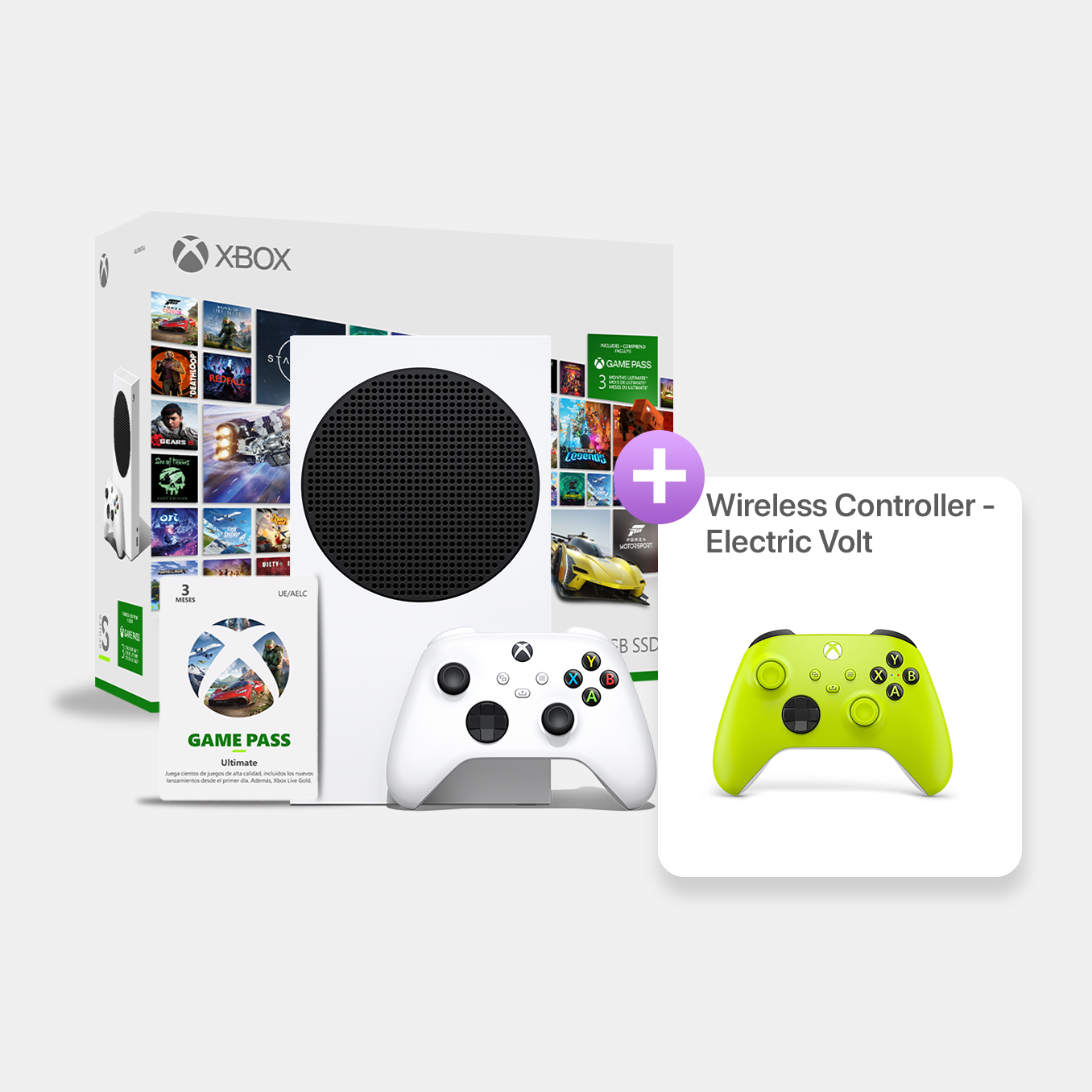 - Xbox Series S - Starter Bundle - Incluye 3 meses de Game Pass Ultimate - Consola digital SSD de 512 GB + Controller Volta GREEN